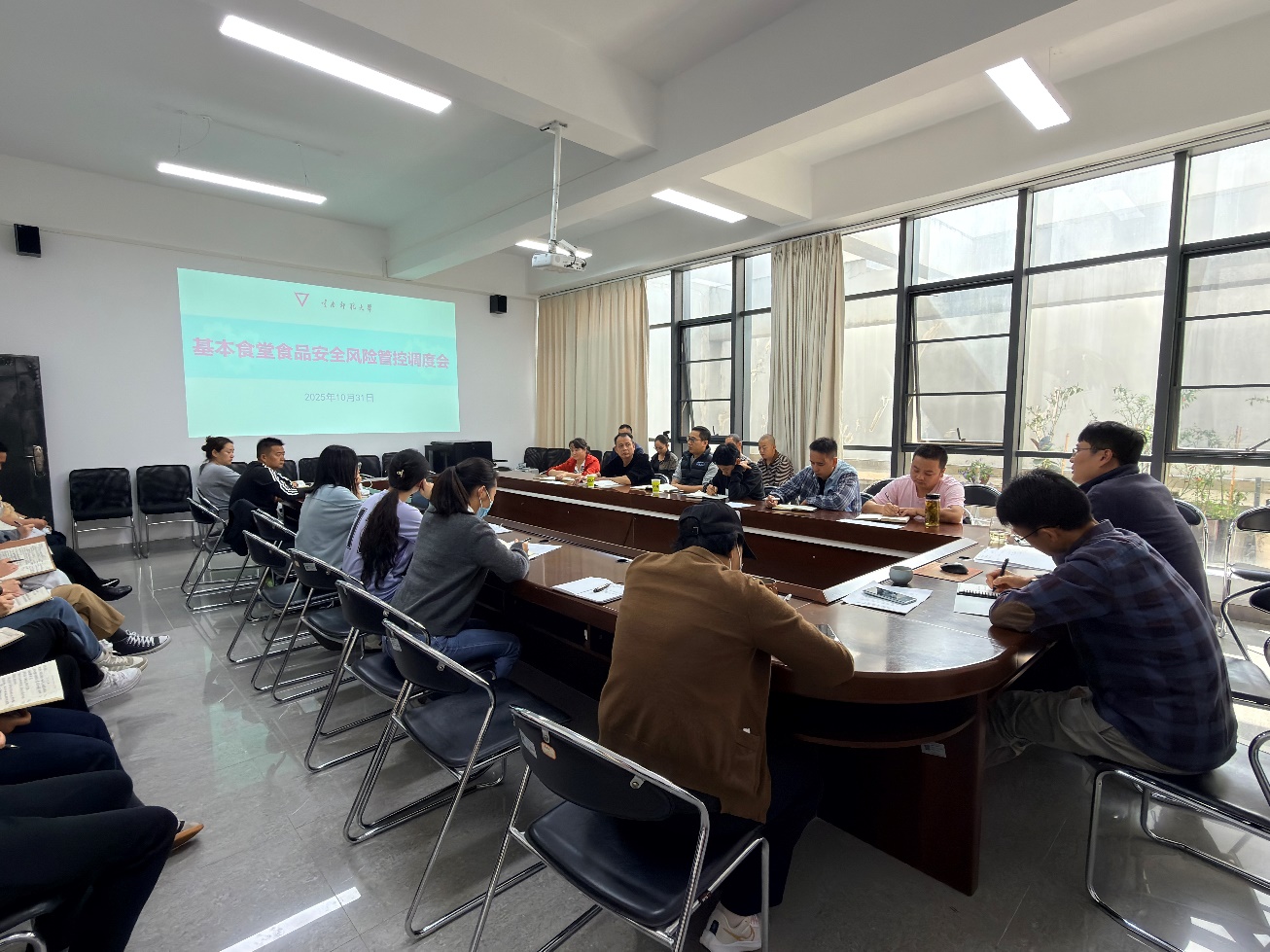 10月31日下午,后勤保障服务中心组织召开2025年10月食品安全风险管控调度会。全校基本食堂食品安全总监、食品安全主管、食品安全员、食堂保管员参加了会议,会议由食品安全主管刘兰飞主持。
